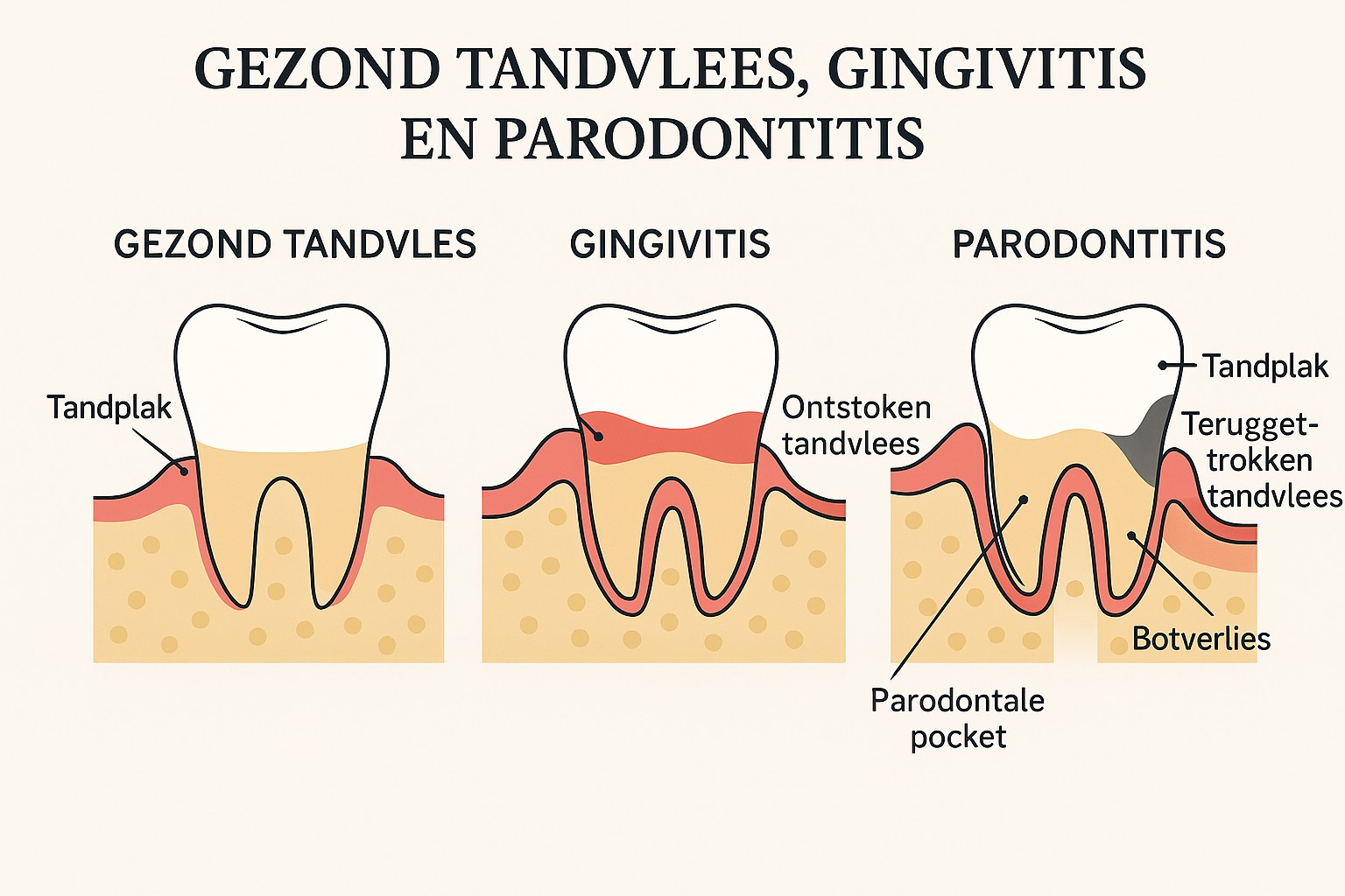Gezond tandvlees, gingivitis en parodontitis